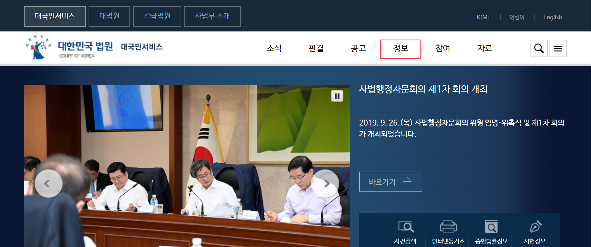 대법원 나의사건검색을 위해서 한 가지 필요한 것은 자신의 사건번호나 공인인증서가 필요합니다. 사건번호로 사건현황을 알 수 있기 때문이죠. 본인의 사건번호를 아신다면 대법원 사이트에 접속후에 '정보' 클릭 후 '나의 사건검색'를 클릭하시면 됩니다. 과거에는 나의사건검색을 할 때 '사건번호'로만 검색이 가능했지만, 이제는 '공인인증서'로도 검색이 가능합니다.